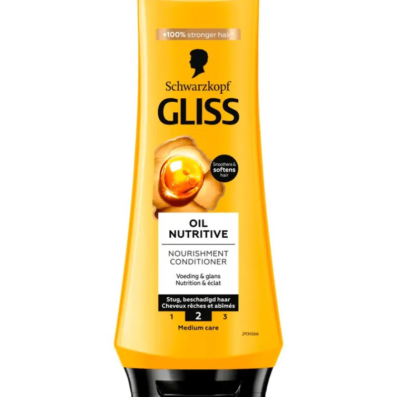 Het haar wordt belast door dagelijks borstelen en stylen, wat resulteert in stug en beschadigd haar. Om het haar soepel te houden en er gezond uit te laten zien, heeft het uitgebreide verzorging nodig. De Gliss Oil Nutritive conditioner combineert omega 9 en marula-olie om het haar te voeden.