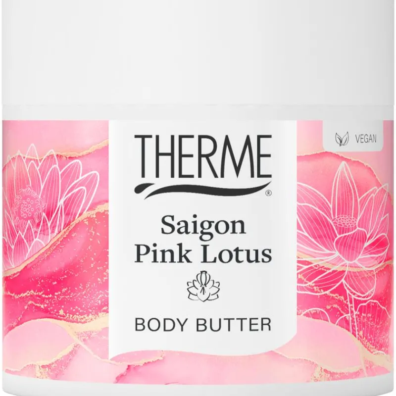 Therme Saigon Pink Lotus Body Butter is een rijk voedende crème die de huid intensief hydrateert. Het laat een verzorgend laagje achter en parfumeert het lichaam langdurig. Geniet van de subtiele bloemengeur van roze lotus gecombineerd met warme amber en zoete vanille.