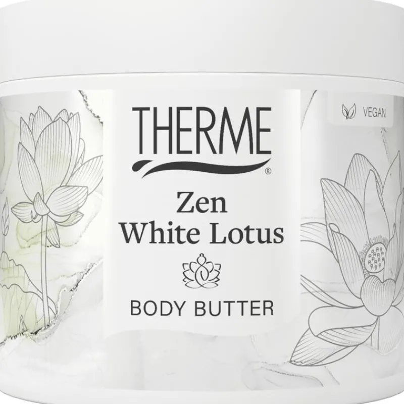 Therme Zen White Lotus Body Butter is een rijk voedende crème die de huid intensief hydrateert. Het laat een verzorgend laagje achter en parfumeert het lichaam langdurig. Geniet van de serene geur van witte lotus gecombineerd met aromatische jasmijn en subtiele witte musk.