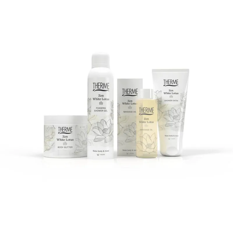 Therme Zen White Lotus is geïnspireerd op rustgevende Zen-rituelen en de symboliek van de witte lotus; transformatie en puurheid. Creëer je eigen wellnessritueel en neem de tijd voor een heerlijke douchebeleving met de Therme Zen White Lotus producten.
