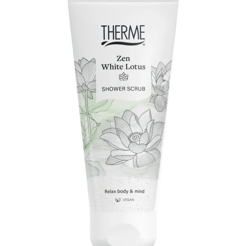 Therme Zen White Lotus Shower Scrub is een milde lichaamsscrub met 100% natuurlijke scrubdeeltjes. Geniet van de serene geur van witte lotus gecombineerd met aromatische jasmijn en subtiele witte musk.