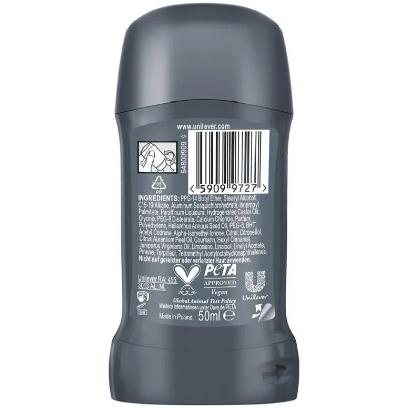 - Dove Men+Care deodorant is door PETA gecertificeerd als ‘Vegan’