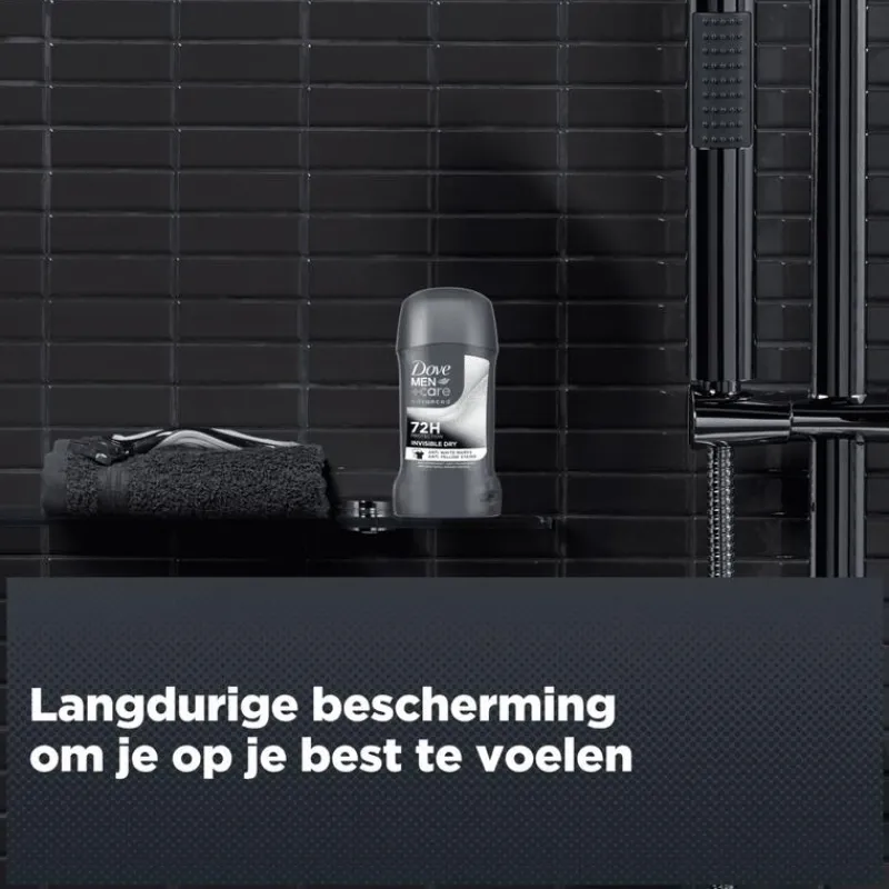 Dove Men+Care Advanced Invisible Dry Anti-Transpirant Deodorant Stick met anti-bacteriële geurbestrijding beschermt tot 72 uur lang tegen zweet en nare geurtjes en heeft een langdurig frisse geur. De milde formule van Dove Men+Care, verzorgt je huid en geeft je de bescherming die je nodig hebt. Verwen jezelf met deze deodorantstick die je 72 uur bescherming biedt tegen geur met de unieke verzorging die je gewend bent van Dove Men+Care. Deze anti-transpirant beschermt zowel je oksels als je kleding en is onzichtbaar bewezen op zwart en wit en is dus de perfecte oplossing tegen witte strepen en gele vlekken in je kleding.