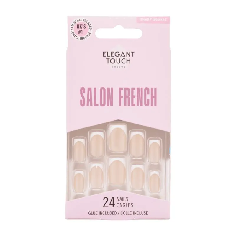 Elegant Touch French 168 Nepnagels met Lijm 24st. Deze manicure-in-minuten kit biedt salonkwaliteit, breukbestendige nagels met een superglanzende gelafwerking in slechts een paar simpele stappen. Ben jij een fan van vierkante nagels? Dan zul je onze nieuwe SHARP SQUARE mani “French 168” GEWELDIG vinden. Perfect scherpe randen, een lichte dip in het midden, een klassieke roze basis en een Franse tip die de randen omhoog krult.