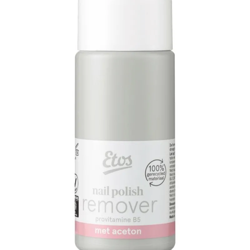 Etos Nail polish remover met aceton 150 ml verwijdert moeiteloos nagellak. De nail polish remover verwijdert snel en efficiënt alle soorten nagellak. De remover bevat provitamine B5 en droogt de nagels niet uit.