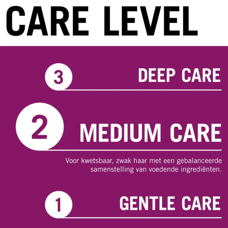 - Gliss Care Level: 2 – Medium verzorging, met een uitgebalanceerde samenstelling van voedende ingrediënten.