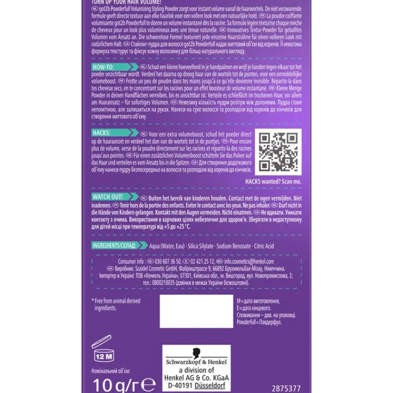 Got2b Powderfull Volumizing Styling Powder zorgt direct voor maximale volume vanaf de haaraanzet. De gewichtloze formule geeft textuur aan elke haarlok voor een vollere look met een natuurlijke hold.
