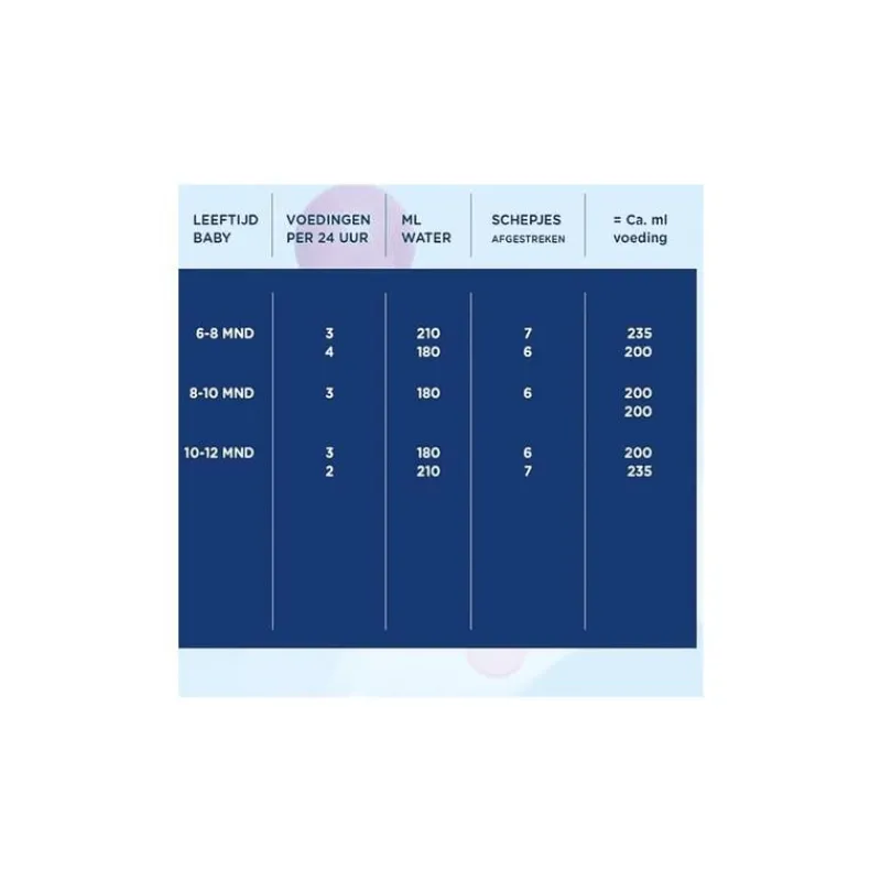 • Babyvoeding met een vetsamenstelling met melkvet en is vrij van palmolie