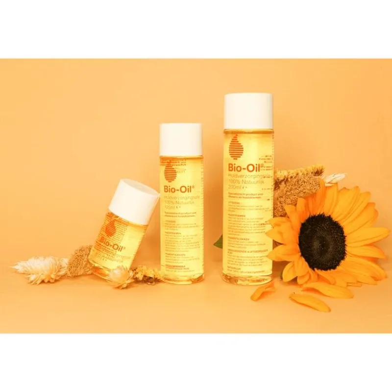 Bio‑Oil® Huidverzorgingsolie 100% Natuurlijk is een volledig natuurlijk product waarvan klinisch is bewezen dat het helpt de zichtbaarheid van littekens en huidstriemen te verminderen. De unieke formule is ook zeer effectief bij pigmentvlekken, huidveroudering en een vochtarme huid. De formule is 100% natuurlijk.