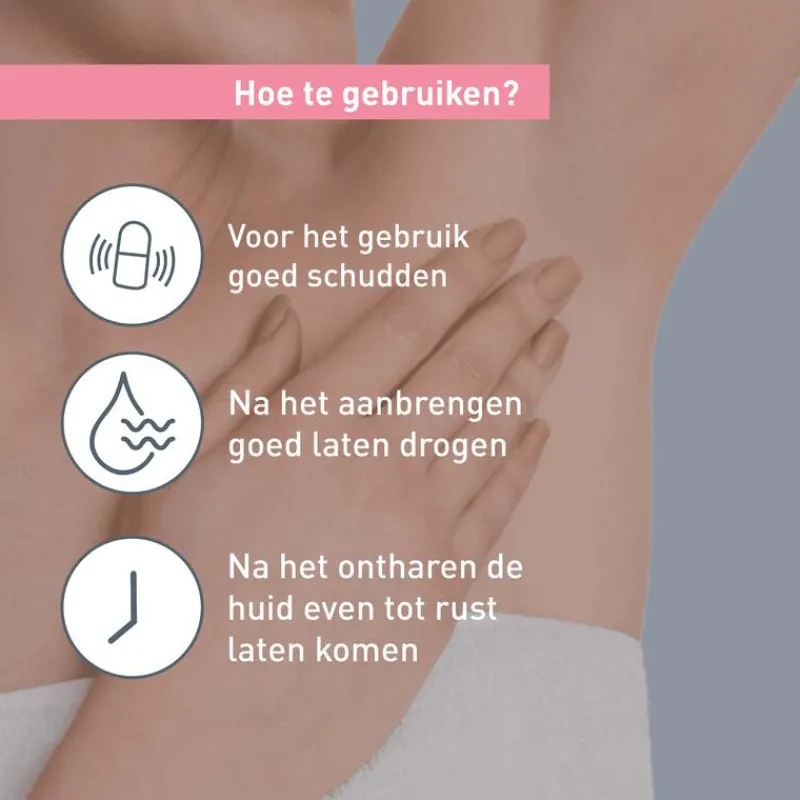 Gebruiksadvies: Na het aanbrengen goed laten drogen. Na het ontharen de huid even tot rust laten komen alvorens Deoleen aan te brengen.