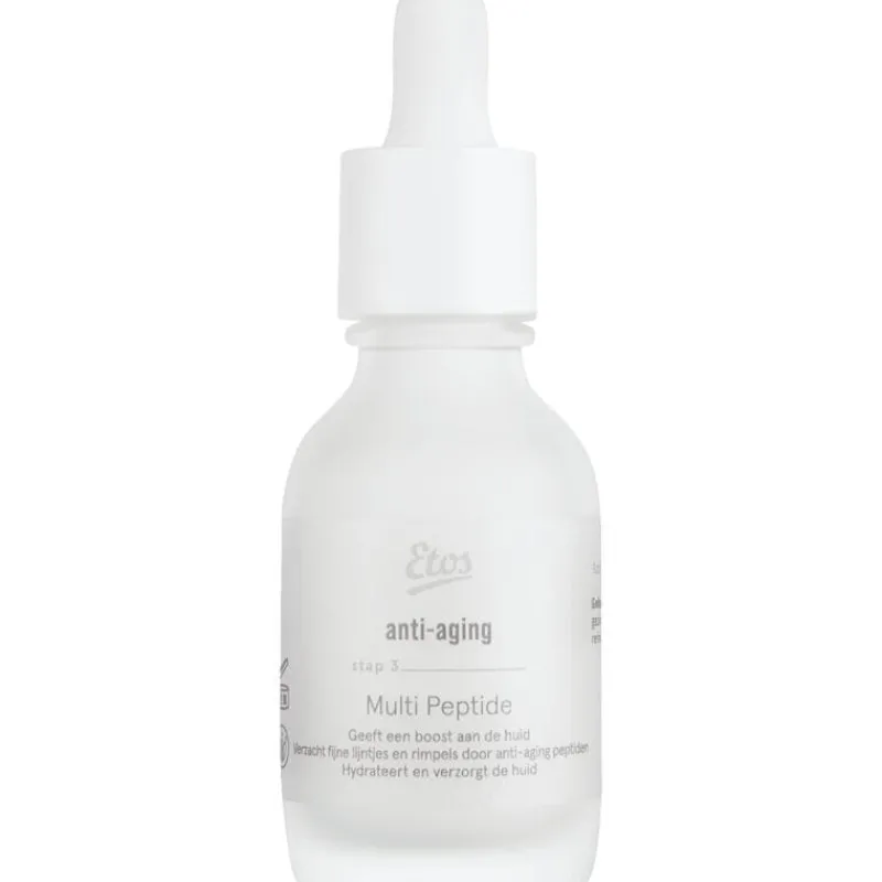 Etos Multi Peptide Serum is een anti-aging serum, die de huid een extra boost geeft door anti-aging peptiden. Fijne lijntjes en rimpeltjes worden verzacht door de vocht inbrengende eigenschappen.