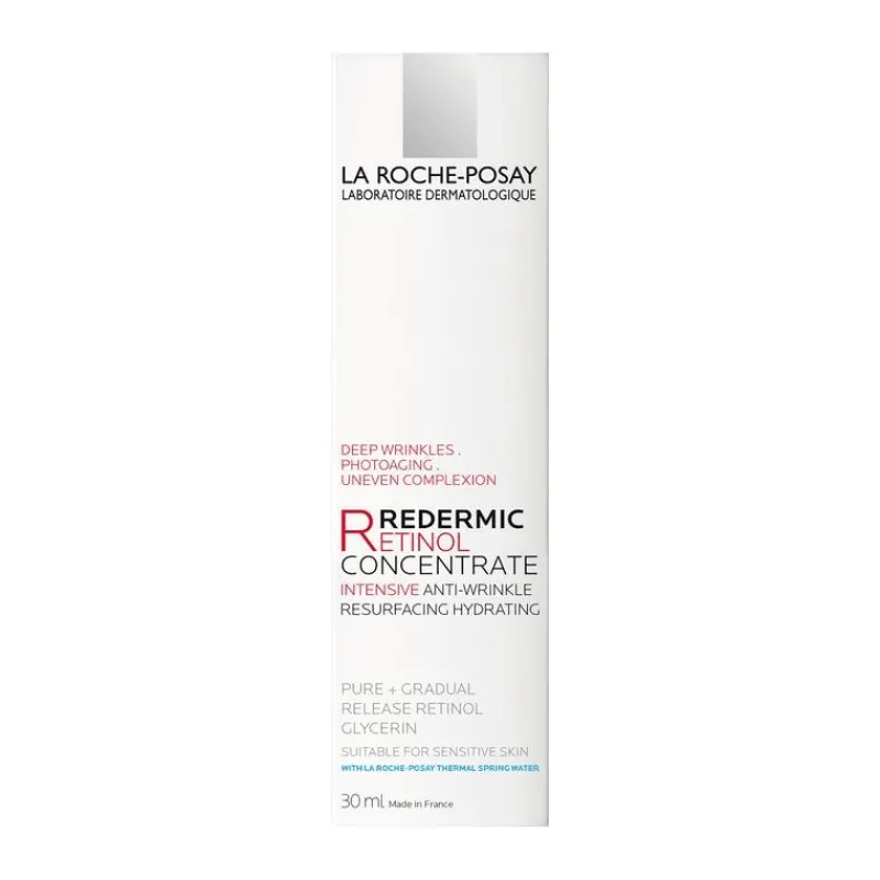 Redermic Retinol van La Roche-Posay is een crème om opvallende rimpels te bestrijden, het huidoppervlak te verbeteren, vroege vlekjes te verminderen en de teint te egaliseren. Het retinolcomplex stimuleert de natuurlijke collageen- en elastineaanmaak, en is uiterst geschikt voor een gevoelige huid dankzij de combinatie van vrij en progressief vrijgesteld retinol en verzachtende neurosensine. De lichte vloeibare textuur van Redermic Retinol is niet vet of kleverig en trekt snel in.