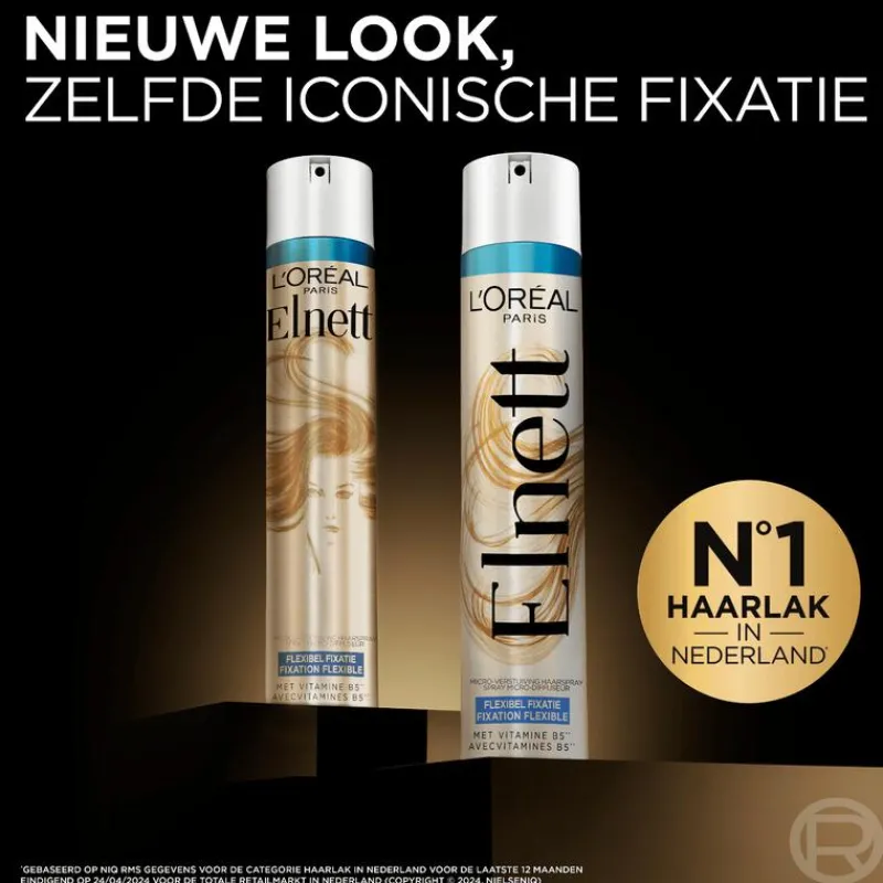 De Elnett Flexible Haarspray van L’Oréal Paris biedt een flexibele fixatie en geeft een zijdezacht gevoel.