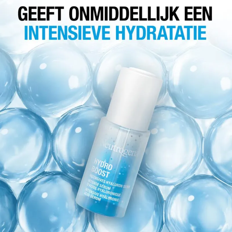 Het Neutrogena Hydro Boost Intensief Hyaluron Serum is een intensief hydraterend en lichtgewicht concentraat dat speciaal is ontwikkeld met dermatologen. Dit parfumvrije serum is geschikt voor de droge huid en heeft de hoogste concentratie hyaluronzuur binnen de Hydro Boost-lijn. Het bevat 100% natuurlijke trehalose en provitamine B5, die de huideigen hyaluronzuur productie stimuleren. Dit zorgt voor onmiddellijke intense hydratatie en helpt de vochtbarrière van de huid te versterken, waardoor de huid er gladder uitziet in slechts 2 weken.
