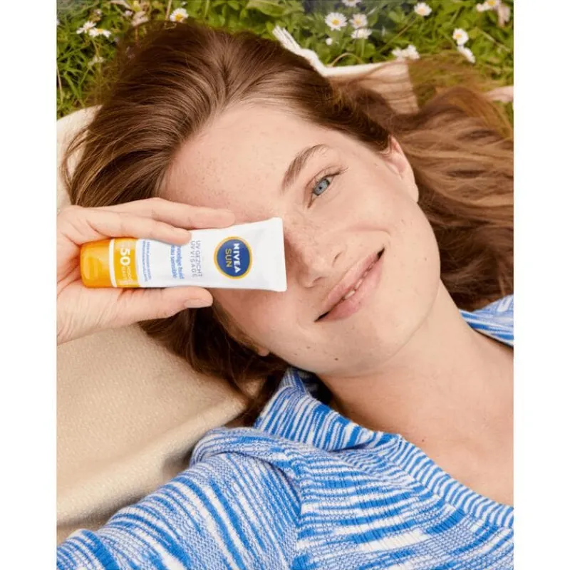 De gevoelige huid heeft speciale bescherming tegen de zon nodig. Gebruik daarom NIVEA SUN Face Sensitive Gezichtszonnecrème. Dit is een zonnecrème die speciaal ontwikkeld is voor de gevoelige huid van het gezicht. Je geniet niet alleen van onmiddellijke bescherming tegen zonnebrand en huidirritaties. De crème heeft namelijk ook een hydraterende werking die een trekkerig gevoel tegengaat. Dankzij SPF 50 weet je zeker dat de zon je huid niet kan beschadigen, gaat roodheid tegen en voorkomt vroegtijdige huidveroudering. De formule van NIVEA SUN Face Sensitive Gezichtszonnecrème is parfumvrij, waardoor er geen irriterende bestanddelen in de zonnecrème zitten. Het trekt makkelijk in de huid, zonder een vet laagje achter te laten. Het is ook een goede bron van antioxidanten. Dit zijn natuurlijke stofjes die je cellen van binnenuit beschermen tegen externe invloeden, waaronder de zon. De huidvriendelijkheid van NIVEA SUN Face Sensitive Gezichtszonnecrème is dermatologisch goedgekeurd.