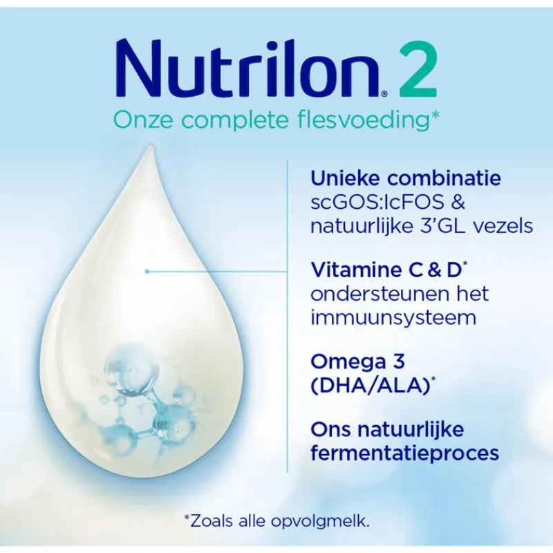 BELANGRIJK • Borstvoeding is de beste voeding voor je baby.• Wil je Nutrilon 2 gebruiken? Overleg dan met je consultatiebureau of arts.• Nutrilon 2 is een opvolgmelk, geschikt vanaf 6 maanden als onderdeel van een gezonde, gevarieerde voeding.• De eerste 6 maanden na de geboorte is Nutrilon 2 niet geschikt als vervanging van borstvoeding.
