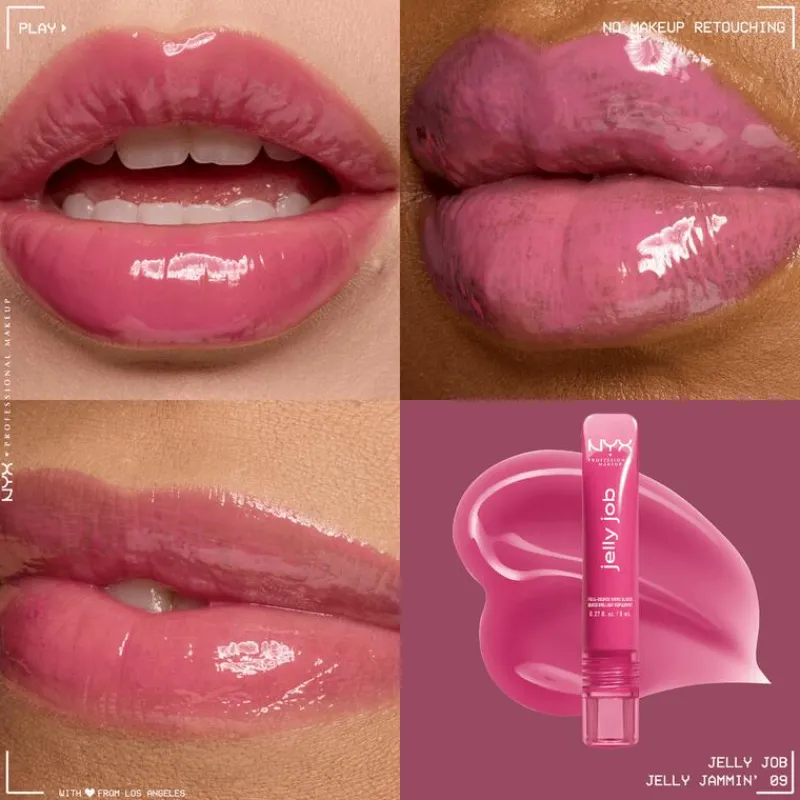 NYX Professional Make Up Jelly Job Lipgloss is een innovatieve lipgloss die je lippen direct omhult met een onweerstaanbare, volle glans! Met slechts één swipe glijdt onze nieuwe spatula-applicator naadloos over je lippen en doordrenkt ze met een lichte, jelly-zachte textuur die zorgt voor extra volume en een sappige, high-shine finish. NYX Professional Make Up Jelly Job Lipgloss geeft je de glasachtige lippen van je dromen, waardoor jouw perfecte pout alle aandacht trekt. Nu verkrijgbaar in 16 verrukkelijke tinten, in zowel shimmer als pure-shine finishes.