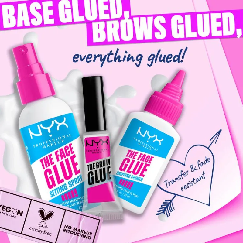 NYX Professional Make Up The Face Glue Primer is een gezichtsprimer die ervoor zorgt dat je make-up tot wel 24 uur blijft zitten. Van foundation tot poeder en blush, er is niets dat deze lijmachtige primer niet kan vasthouden voor een frisse look en een gehydrateerde huid de hele dag door!