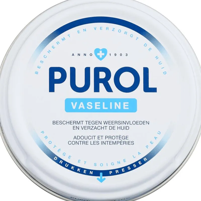 Purol Vaseline is een zuur- en geurloze, transparante, vette zalf voor gezicht en lichaam. Het is geschikt voor elk huidtype, ook de gevoelige huid. De crème bevat petrolatum en heeft een verzachtende en verzorgende werking. Purol Vaseline zorgt voor een comfortabel gevoel en gaat ruwheid en schraalheid tegen. De vaseline biedt bescherming van de huid bij extreme invloeden zoals guur, koud weer en extreme droogte.
