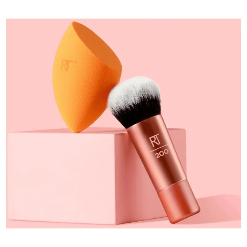De Real Techniques Mini Travel Duo bevat een mini foundationkwast en een Miracle Complexion Sponge, ideaal voor het aanbrengen en blenden van make-up onderweg. De kwast zorgt voor een egale dekking met vloeibare of crème foundation, terwijl de spons een natuurlijk, dewy resultaat geeft dankzij het slimme 3-in-1 ontwerp. Beide tools zijn vegan, cruelty-free en latexvrij.