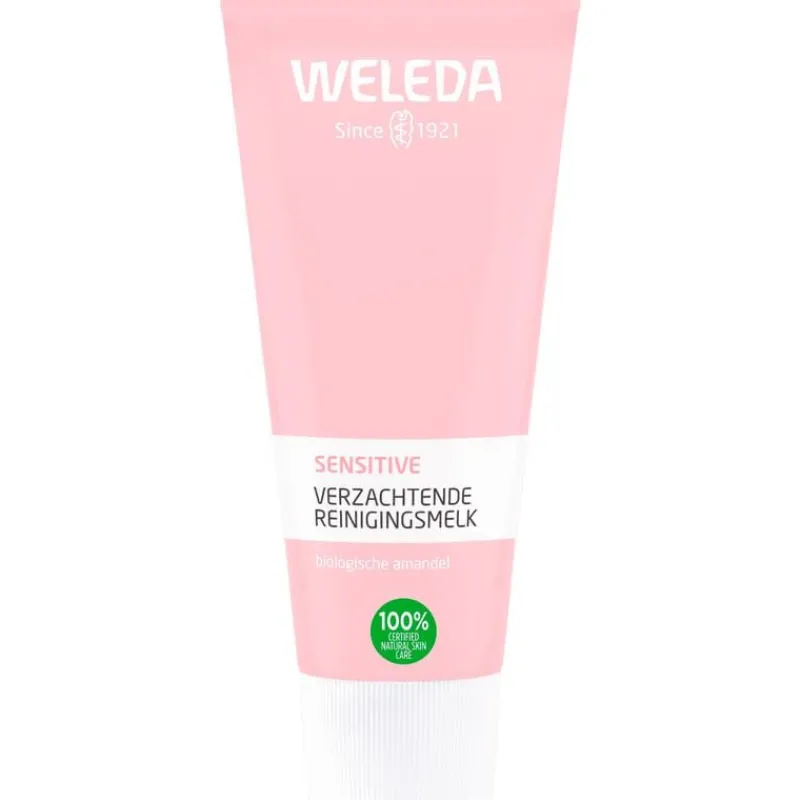 Speciaal voor de gevoelige huid heeft WELEDA Sensitive Verzachtende Reinigingsmelk. De zachte, parfumvrije reinigingsmelk is 100% natuurlijk en reinigt mild. Zo herstelt de reinigingsmelk de vochtbalans van je gevoelige huid en verwijdert het make-up, zonder te irriteren. Amandel- en pruimenpitolie voeden en reinigen je huid mild. Zo voelt je huid na het reinigen zacht aan.