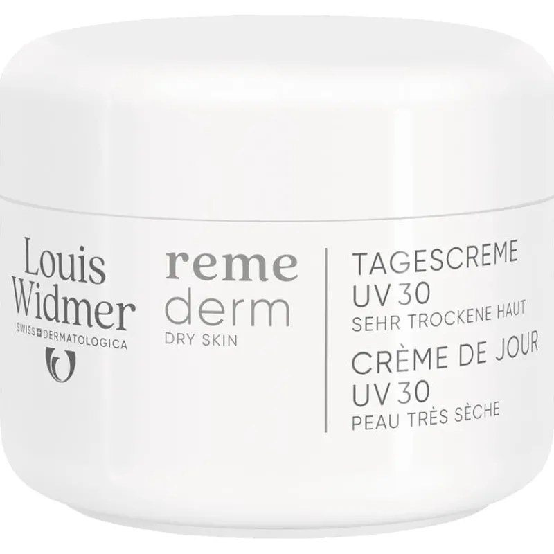 Louis Widmer remederm Dagcrème UV 30 is een voedende, hydraterende gezichtscrème met ureum, vitamine A en UV-bescherming.