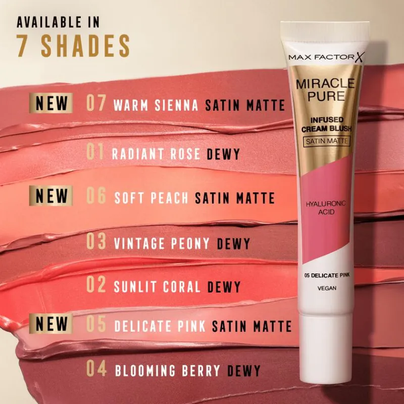 Voeg een vleugje kleur toe en geniet van een stralende look de hele dag door met Max Factor Miracle Pure Cream Infused Blush.