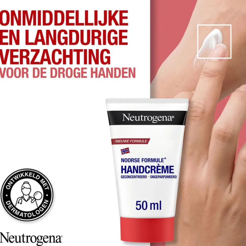 De Neutrogena handcrème Noorse formule heeft een geconcentreerde formule en is ongeparfumeerd. De crème zorgt voor 24 uur langdurige verzorging, en verlicht extreem droge, schrale handen met slechts 1 druppel. De verzorgende handcrème is verrijkt met 40% glycerine en vitamine E – dermatologisch getest en beschermt de huidbarrière. Deze handcrème is precies wat je nodig hebt om je handen goed te verzorgen en droge handen tegen te gaan. Ideaal voor in de koudere maanden en geschikt voor de gevoelige huid.