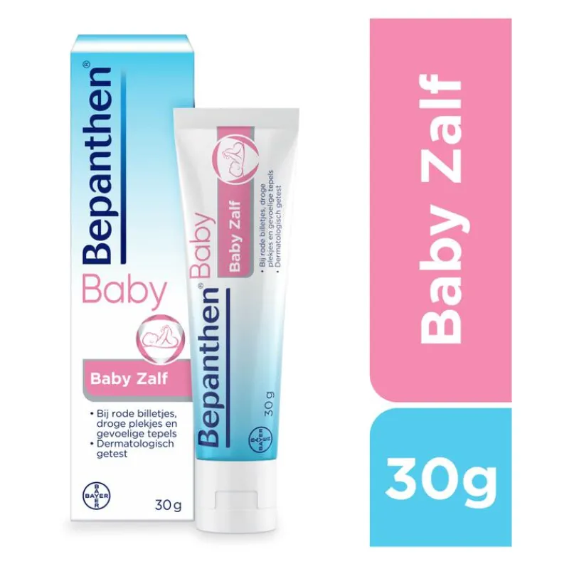 Rode babybilletjes?! Door wrijving en het contact van het babyhuidje met urine en ontlasting kunnen rode babybillen (of luieruitslag) ontstaan, die voor pijn en jeuk bij je baby’tje kan zorgen. Dit kan heel vervelend zijn! Gebruik Bepanthen Baby Zalf voor de verzorging en verzachting van rode babybilletjes. De BabyZalf (billenzalf baby) beschermt de babybillen tegen urine en ontlasting. Het bevat onder andere een hoge concentratie dexpanthenol. Dit beschermt babybilletjes en ondersteunt het huidherstel zonder een niet-doorzichtige witte laag achter te laten. Door de speciale samenstelling vormt de zalf een beschermend laagje op de huid. Het doorzichtige laagje van Bepanthen sluit de huid niet af maar laat haar ademen. De babyhuid wordt beschermd en haar natuurlijke kracht en evenwicht blijft behouden. De zalf is zorgvuldig samengesteld en bevat geen parfum, kleurstoffen en conserveermiddelen; pure en zachte bescherming! .Naast rode babybilletjes is Bepanthen Baby Zalf ook zeer geschikt voor:• Gevoelige en kwetsbare huidplooitjes van jouw baby• Verzorging van gevoelige en schrale tepels bij borstvoeding (tepelkloven, tepelkloven zalf)• Droge huidplekjes zoals wangen, ellebogen, handen of kniën Waarom een zalf? Baby zalf (zalf baby) vs baby crème (baby creme, billencrème, luiercrème)Een zalf bestaat voor het grootste gedeelte uit vet. Na het smeren blijft er een vetlaagje achter op je huid dat meestal een tijdje blijft zitten. Naast intensieve verzorging, beschermt een zalf dus ook je huid tegen invloeden van buitenaf. Crèmes bevatten meer water en leggen geen laagje. Daarom adviseren wij bij de verzorging en bescherming van de tere babyhuid een baby zalf in plaats van een baby crème.* Bepanthen bevat dexpanthenol. Deze stof heeft de bekende eigenschap het huidherstel te ondersteunen.