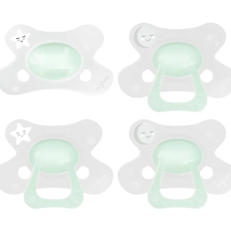 De Difrax Fopspeen Natural 20+ Maanden is speciaal ontwikkeld voor kindjes vanaf 20 maanden. Het siliconen zuiggedeelte is steviger en meer gevuld dan bij de 12+ maanden fopspeen. De 20+ maanden fopspeen is daarom nog beter afgestemd op de behoefte van kindjes van 20+ maanden. De gehele ring van het Glow in the Dark speentje absorbeert het licht en gloeit in het donker. Ideaal om de fopspeen in het donker makkelijk terug te vinden in het bedje.