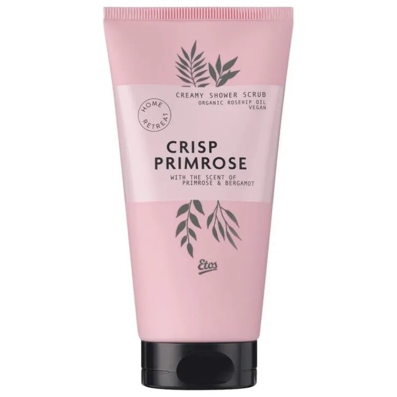 Etos Crisp Primrose Creamy shower scrub verwijdert op milde wijze dode huidcellen. Deze crèmige douchescrub laat je huid stralen en bevat organic rozenbottelolie en abrikoos scrubdeeltjes. Ervaar een zachte en gladde huid met de delicate geur van sleutelbloem en bergamot.