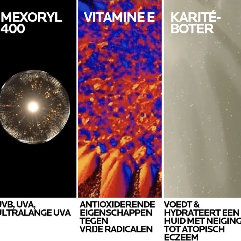 - Breedspectrum bescherming tegen UVA/UVB & Ultra-Lange UVA stralen dankzij het Mexoryl 400 filter