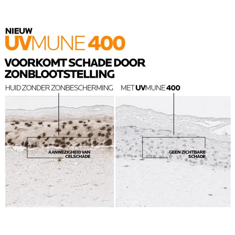 Anthelios UVMune 400 hydraterende crème SPF50+ bevat mexoryl 400, het meest effectieve UV-filter tegen de meest doordringende UV-stralen: langeUVA*. Onze ultieme bescherming (UVB + UVA + LANGE UVA) tegen diepe celbeschadiging. Getest op gevoelige, reactieve en intolerante huid. Geschikt voor alle huidtypen en alle fototypen. Zeer resistent tegen water, zweet en zand. Optimale tolerantie. Prikt niet in de ogen. Lichtgewicht textuur. Niet geparfumeerd. *(380 – 400nm)