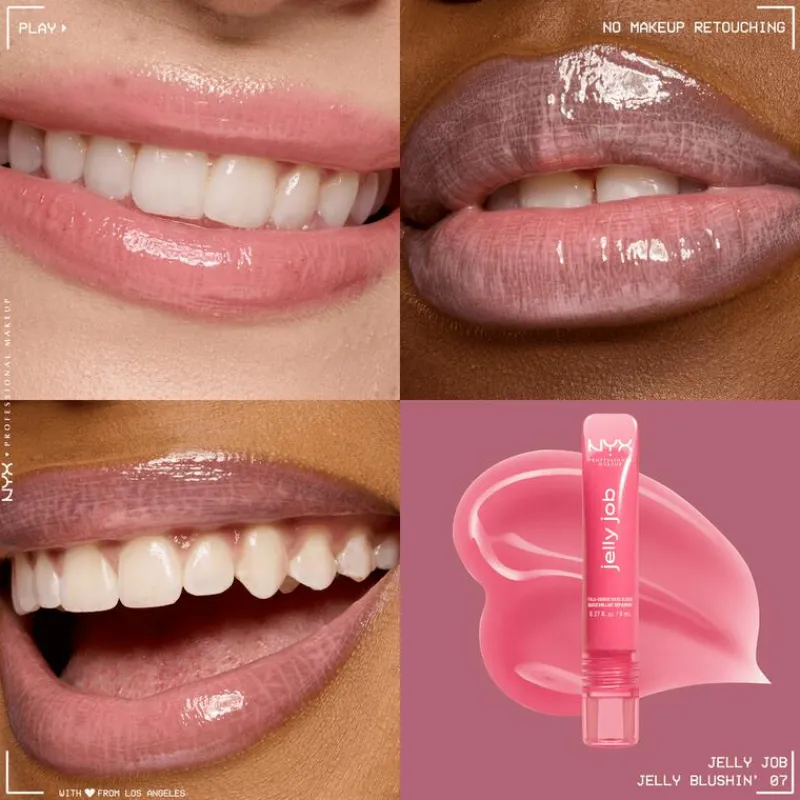 NYX Professional Make Up Jelly Job Lipgloss is een innovatieve lipgloss die je lippen direct omhult met een onweerstaanbare, volle glans! Met slechts één swipe glijdt onze nieuwe spatula-applicator naadloos over je lippen en doordrenkt ze met een lichte, jelly-zachte textuur die zorgt voor extra volume en een sappige, high-shine finish. NYX Professional Make Up Jelly Job Lipgloss geeft je de glasachtige lippen van je dromen, waardoor jouw perfecte pout alle aandacht trekt. Nu verkrijgbaar in 16 verrukkelijke tinten, in zowel shimmer als pure-shine finishes.