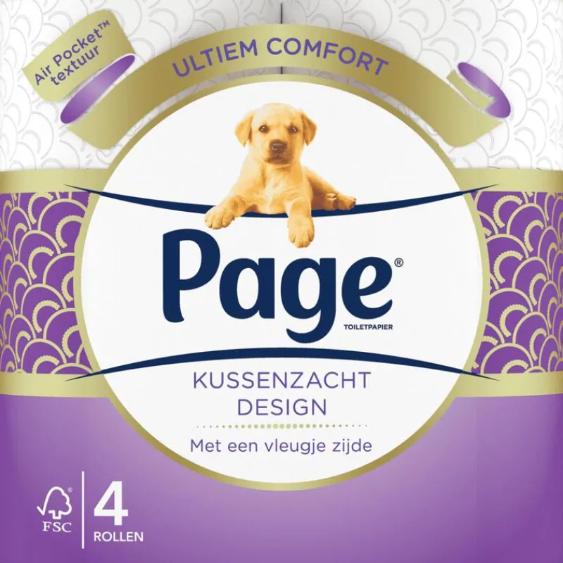 Page wil dat je jezelf elke dag schoon en zelfverzekerd voelt. Page Kussenzacht Design toiletpapier is speciaal ontworpen voor ultiem comfort. De heerlijk dikke, superzachte velletjes wc papier met unieke Air Pocket™-textuur zijn zacht voor de huid en voor een comfortabele reiniging als nooit tevoren. De nieuwe Air Pocket™ textuur absorbeert druk beter wat zorgt voor ultiem comfort en zachtheid. De verpakking is 100% recyclebaar en is gemaakt van 30% gerecycled plastic. Gebruik Page vochtig toiletpapier na Page wc papier voor een schoon gevoel, de hele dag.