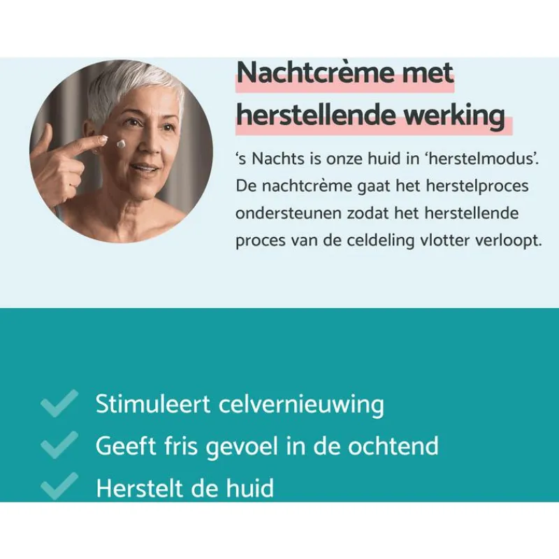 Deze creme met microbiome technologie werkt regenererend en voedend en verbetert het zelfvernieuwingsproces van de huid tijdens het slapen. Geeft een lichtgevend en fris uiterlijk in de ochtend.