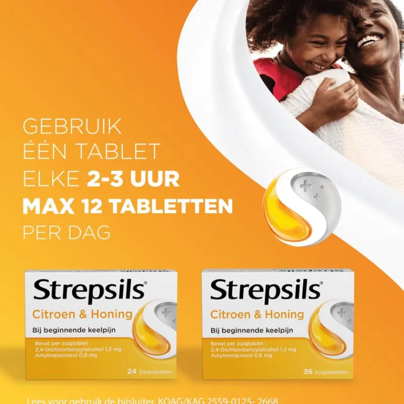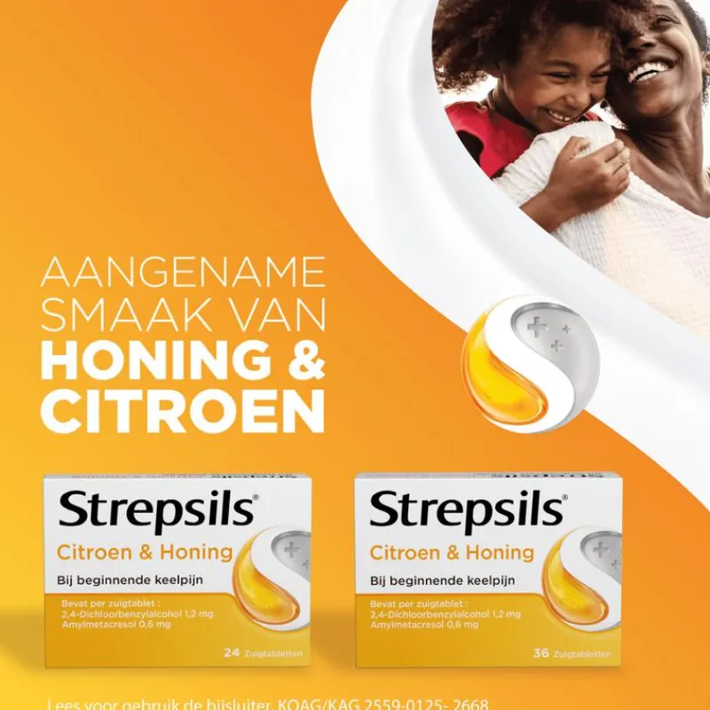 Strepsils Zuigtabletten Citroen& Honing helpt bij beginnende keelpijn. Strepsils is een geneesmiddel met antibacteriële ingrediënten waarvan klinisch is bewezen dat ze de bacteriën doden die keelpijn veroorzaken. De tabletten met de bekende Citroen en Honing verzachten de keel onmiddelijk. De Strepsils Zuigtabletten werken nog lang nadat het zuigtablet op is. Lees vóór gebruik de bijsluiter.