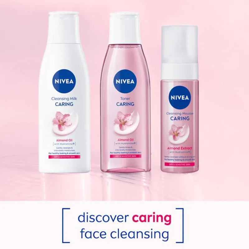 Reinig je huid iedere dag met de NIVEA Verzachtende Reinigingsmelk. Deze milde make-up remover is ontwikkeld om onzuiverheden te verwijderen, zonder je huid te irriteren of uit te drogen. Dat maakt de reinigingsmelk de ideale keuze voor de gevoelige of droge huid. Gebruik het product voor het verwijderen van make-up, maar ook om je huid op te frissen aan het einde van de dag. Er zijn enkele bestanddelen aan de NIVEA Verzachtende Reinigingsmelk toegevoegd. Zo is de reiniger verrijkt met amandelolie. Dit is een milde antiallergene olie die je huid intensief hydrateert, zonder een vettig laagje achter te laten. Daarnaast bevat de reinigingsmelk hydramine. Dit is een lichaamseigen stof die ervoor zorgt dat de vochtbalans van je huid op peil blijft. Tel hier de glycerine vloeistof bij op en je geniet van een NIVEA reinigingsmelk die je huid op meerdere manieren voedt, waardoor je nooit last hebt van een droog of trekkerig gevoel. • Milde dagelijkse gezichtsreiniging• Verwijdert make-up, mascara en andere onzuiverheden• Speciaal ontwikkeld voor de droge en gevoelige • Helpt de vochtbalans van de huid te behouden• Verrijkt met amandelolie en hydramine