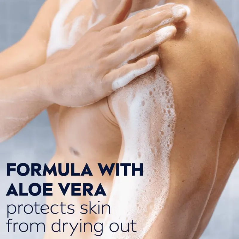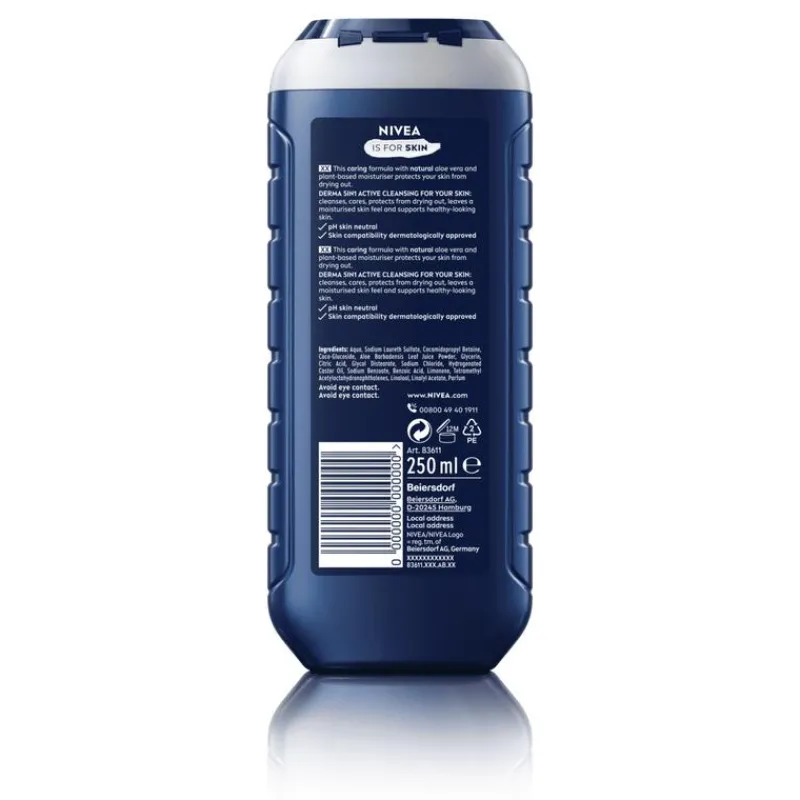 NIVEA MEN Protect & Care Douchegel biedt mannen een complete verzorging voor lichaam, gezicht en haar. De 3-in-1 formule reinigt grondig en hydrateert intensief, zodat je huid niet uitdroogt en fris aanvoelt. Verrijkt met aloë vera, beschermt deze douchegel de huid en zorgt voor een gezond, verzorgd en energiek gevoel na elke douche. De pH-huid neutrale formule is dermatologisch goedgekeurd en respecteert het natuurlijke microbioom van de huid. Ideaal voor dagelijks gebruik, waar en wanneer je wilt. Geniet van een mannelijke geur die positieve energie geeft en een verzorgde huid die er gezond uitziet. Voor mannen die gemak, verzorging en langdurige bescherming willen – elke douche een verwenmoment voor jouw huid.