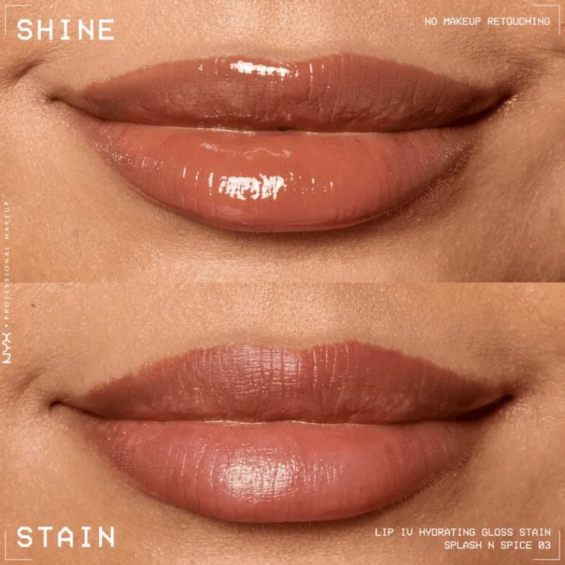 NYX Professional Makeup Lip IV Hydraterende Lipgloss is de ultieme lipgloss voor iedereen die houdt van een vleugje kleur en hydratatie. Deze hydraterende lipgloss blijft tot wel 12 uur zitten en biedt een instant wet shine finish met een langdurig lipstain-effect. Kies uit de 16 verschillende tinten en laat je lippen stralen met een intense, glossy kleur! Door de geavanceerde formule voelt de NYX Professional Makeup Lip IV Hydraterende Lipgloss licht aan op de lippen voor een verfrissende ervaring. De speciale druppelvormige applicator zorgt voor een precieze applicatie, zodat je met slechts één beweging een hydraterende kleur kunt aanbrengen.