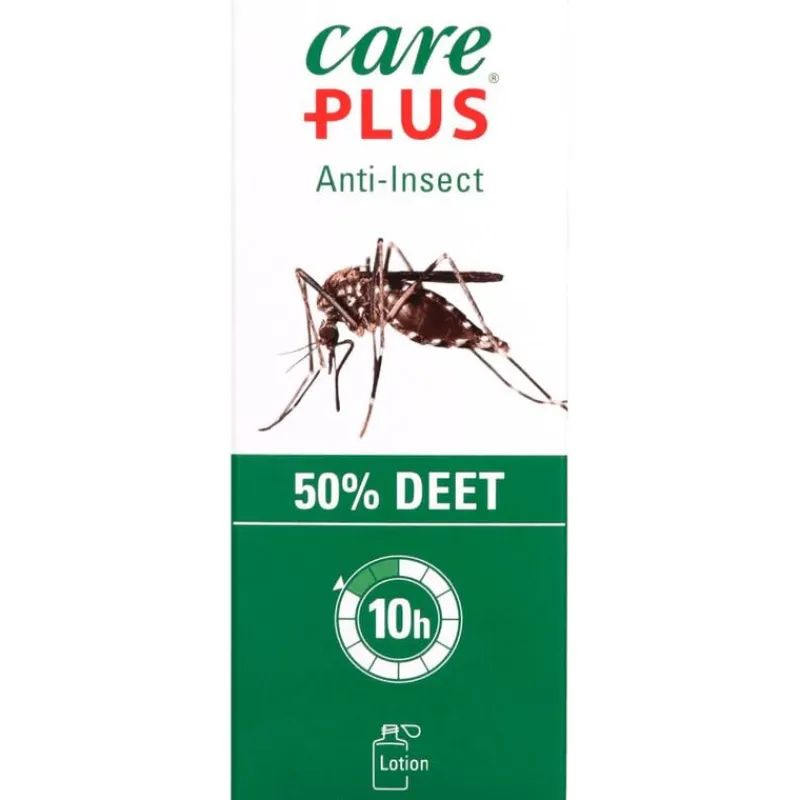Care Plus Deet Anti-Insect Lotion 50% is het sterkste insectwerendmiddel voor de huid. De actieve stof is effectief tegen verschillende ziekte overbrengers, zoals (malaria)muggen en teken. DEET wordt geadviseerd voor bestemmingen waar een risico op malaria, dengue en gele koorts bestaat. DEET is geschikt voor alle bestemmingen, zowel ver weg, als dichterbij huis. Care Plus Deet Anti-Insect Lotion 50% biedt tot 10 uur bescherming tegen steken en beten.