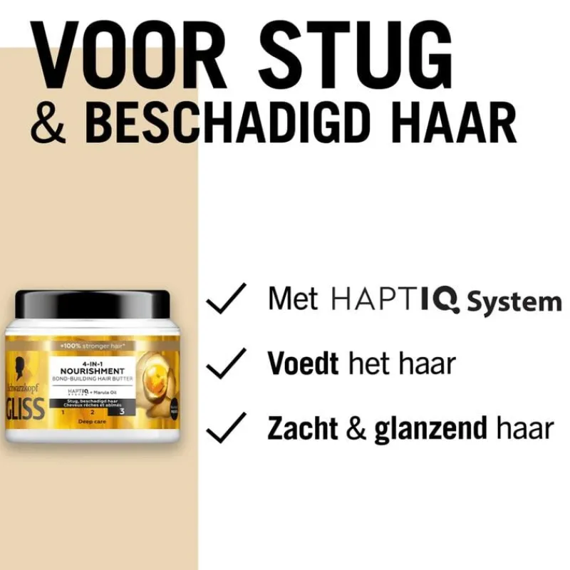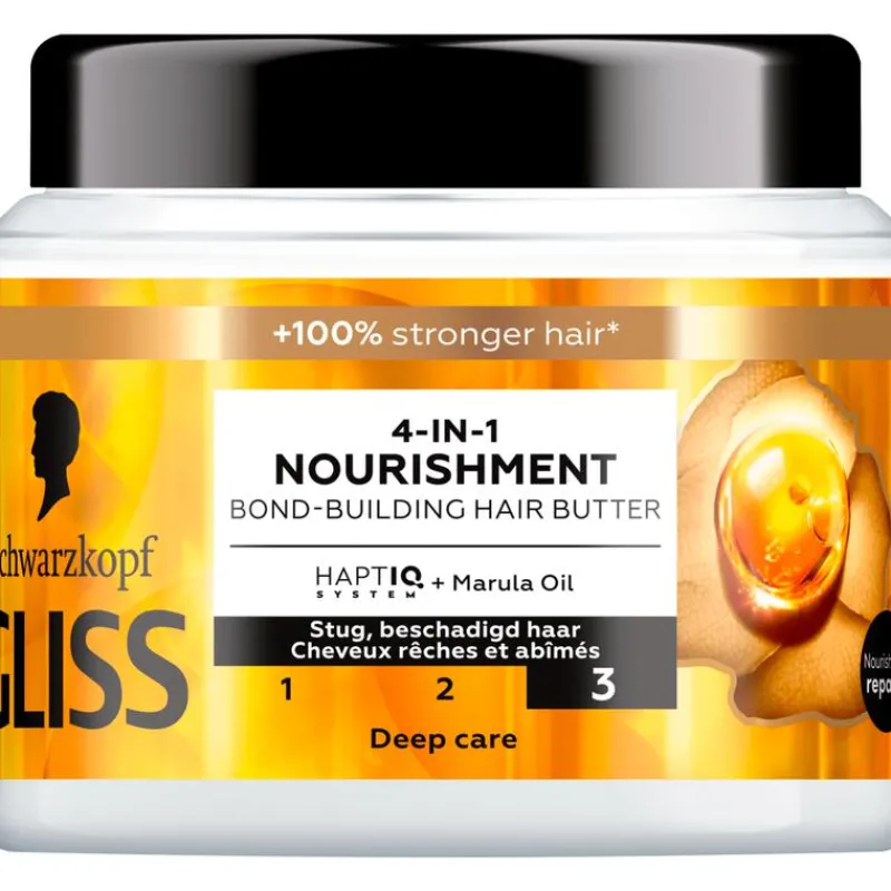 Het haar wordt belast door dagelijks borstelen en stylen, wat resulteert in stug en beschadigd haar. Om het haar soepel te houden en er gezond uit te laten zien, heeft het uitgebreide verzorging nodig. Dit Gliss voedende haarmasker voor stug en beschadigd haar combineert het HAPTIQ System en marulaolie om het haar diep te herstellen en te laten glanzen. Het masker heeft een lichtgewicht crèmige textuur, biedt intense voeding en maakt het haar glad en glanzend.