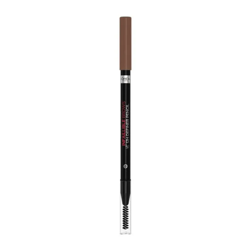 Heb je dunne wenkbrauwen? Probeer dan de L’Oréal Paris Infaillible 12H Definer Pencil ! Dit wenkbrauwpotlood is perfect voor een natuurlijk ogende wenkbrauwlook ! Met de L’Oréal Paris Infaillible 12H Definer Pencil kun je jouw wenkbrauwen inkleuren en bijtekenen Zo creëer je gemakkelijk jouw ideale wenkbrauwvorm en geef je jouw wenkbrauwen wat extra kleur waar nodig.De stevige punt van het potlood zorgt ervoor dat je fijne haartjes kan tekenen en de poederachtige formule die mat is, zorgt voor een natuurlijk effect en is ideaal voor het definiëren en vormgeven van de wenkbrauwen. Dit slijpbaar wenkbrauwpotlood bevat een borsteltje op de andere kant. De Infaillible 12H Definer Pencil is makkelijk aan te brengen en houdt tot 12 uur lang * Geeft niet af. Vlekt niet. Veegproof. Zweetpoof. Waterproof. *Zelfevaluatie, 91 personen