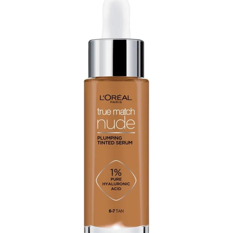 Het L’Oréal Paris True match Nude Volumegevend getint serum is nu verrijkt met micro epidermale hyaluronzuur, een ingrediënt dat extra goed wordt opgenomen door de opperhuid. Het resultaat? De formule kan nog beter helpen de huid te verbeteren en laat deze er voller uitzien in slechts 1 uur*! Met dit product kun je je de voordelen van een huidverzorgingsserum combineren met de dekking van een foundation. Direct na het aanbrengen ziet de huid er stralender en egaler uit. De formule voelt licht aan op de huid en geeft een natuurlijk resultaat. True Mach Nude helpt de huid zichtbaar te verbeteren: onmiddelijk en na verloop van tijd. Het laat de huid er in 1 uur* voller uitzien waardoor fijne lijntjes minder zichtbaar zijn. Daarnaast hydrateert het de huid 24uur** lang. De formule bevat niet alleen hyaluronzuur maar ook glycerine. Hyaluronzuur trekt vocht aan en glycerine zorgt dat het beter door de huid wordt vastgehouden. Na 4 weken gebruik ziet de huid er gladder uit en heeft deze minder droge plekjes. De formule is non-comedogeen, dit houdt in dat de formule de poriën niet verstopt en geschikt voor de gevoelige huid. *Klinische score, 84 personen. ** Instrumentele test Tip: Probeer ook L’Oréal Paris Lumi glotion. Deze kan je aanbrengen over je make-up voor een gloweffect op een gedeelte van je gezicht.