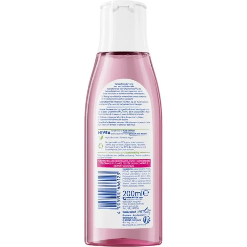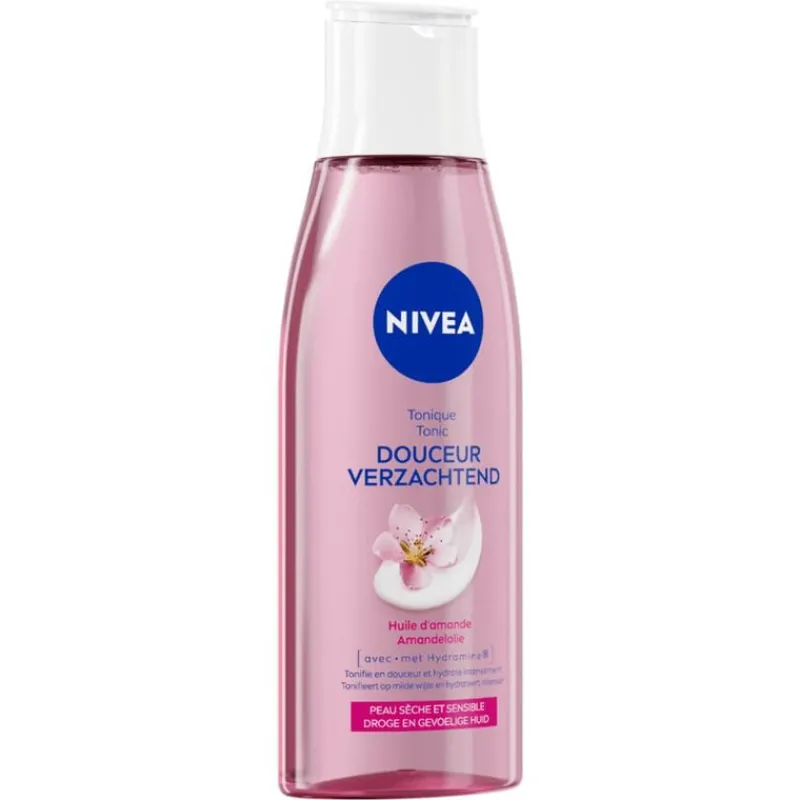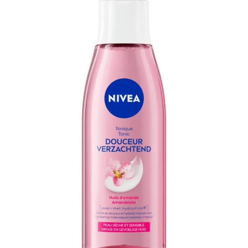 Geef je huid nog wat extra frisheid met de NIVEA Verzachtende Tonic. Deze tonic heeft een hydraterend effect en bereidt de huid optimaal voor op het aanbrengen van een dag- of nachtcrème. Geniet van een verfrissend effect, terwijl de NIVEA tonic nog de laatste restjes vuil van je huid verwijdert. Zo zijn je poriën schoon en open, waardoor ze de voedende bestanddelen van een verzorgende crème nog beter opnemen. NIVEA Verzachtende Tonic is bijzonder mild en geschikt voor de gevoelige en droge huid.De NIVEA Verzachtende Tonic is niet alleen een milde gezichtsreiniger, maar bevat ook natuurlijke amandelolie, bekend om zijn hypoallergene eigenschappen en hydraterende werking, ideaal voor de gevoelige huid. De toevoeging van hydramine zorgt voor een verbeterde vochtretentie, terwijl gezuiverd water de huid verzacht en soepel maakt. Deze tonic is dermatologisch goedgekeurd en bevordert een gezonde, stralende huid. • Zuivert de huid grondig en verwijdert restjes make-up• Verzacht en hydrateert de huid• Heeft een voedende werking dankzij toegevoegde amandelolie• Is geschikt voor de droge en gevoelige huid• Vegan formule