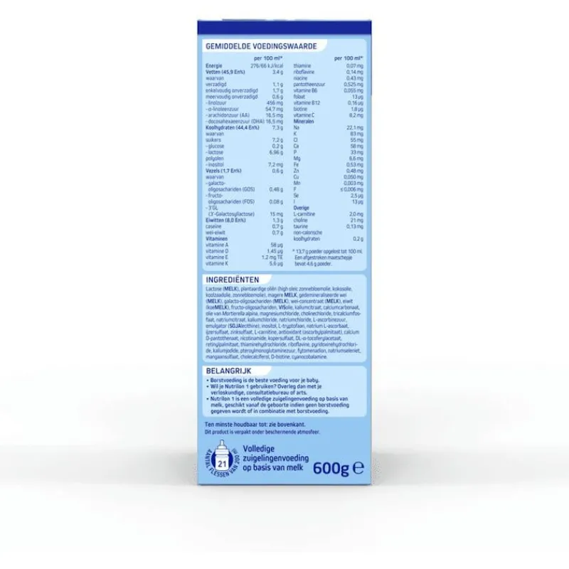 Volledige zuigelingenvoeding op basis van melk, geschikt vanaf de geboorte. Borstvoeding is de beste voeding voor je baby. Wil je Nutrilon 1 gebruiken? Overleg dan met je consultatiebureau of arts.