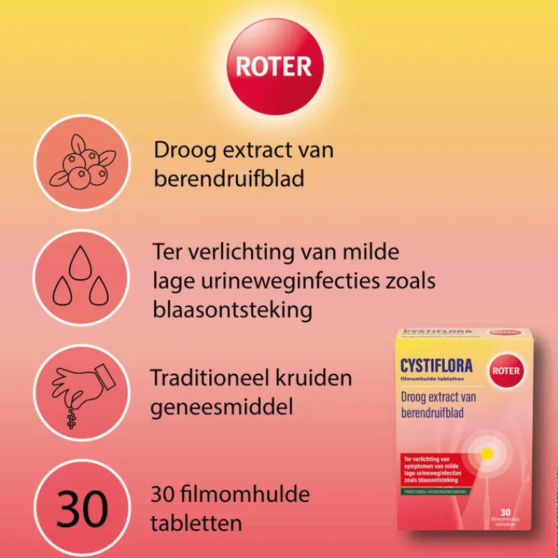 Roter Cystiflora is een traditineel kruidengeneesmiddel. Bevat lactose. Lees voor het gebruik de bijsluiter.