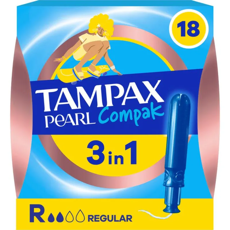 De Tampax Pearl Compak tampons bevatten geen parfum. Tampax Pearl Compak heeft MotionFit-technologie waardoor de tampon lichtjes uitzet om zich aan de unieke vorm van je lichaam aan te passen. Daarnaast helpt het LeakGuard-koordje lekken voorkomen. Tampax Pearl Compak Regular is de beste tampon van Tampax voor een gemiddelde menstruatie. Tampax Pearl Compak tampons zijn getest door gynaecologen. Ze zijn ook onafhankelijk getest op schadelijke stoffen door Oeko-Tex.