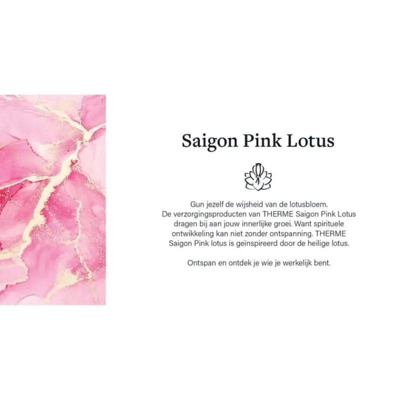 Therme Saigon Pink Lotus is geïnspireerd op de heilige lotus, een symbool voor transformatie en schoonheid. Creëer je eigen wellnessritueel en neem de tijd voor een heerlijke douchebeleving met de Therme Saigon Pink Lotus producten.