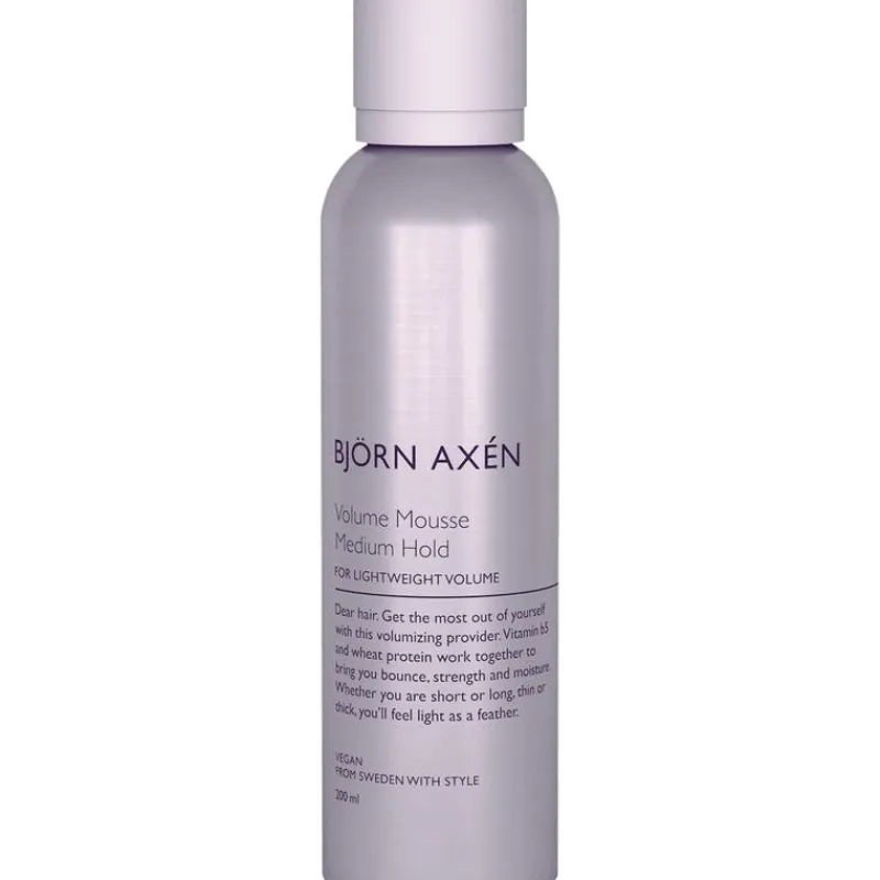 Geef jouw natuurlijke haar een volume boost met de volume mousse van Björn Axén. Deze mousse maakt van plat en onhandelbaar haar een kapsel vol van volume. Zodra de volume mousse in contact staat met de haarwortels smelt het als het ware in de lokken, zonder enige vettige waas achter te laten. Na aanbreng zal je meteen een kapsel opmerken dat meer body heeft. De formule is verrijkt met voedende provitamine B5 en tarweproteïne. Deze ingrediënten creëren volume met een lichte structuur, maken het haar voller en zorgen voor natuurlijk volume.